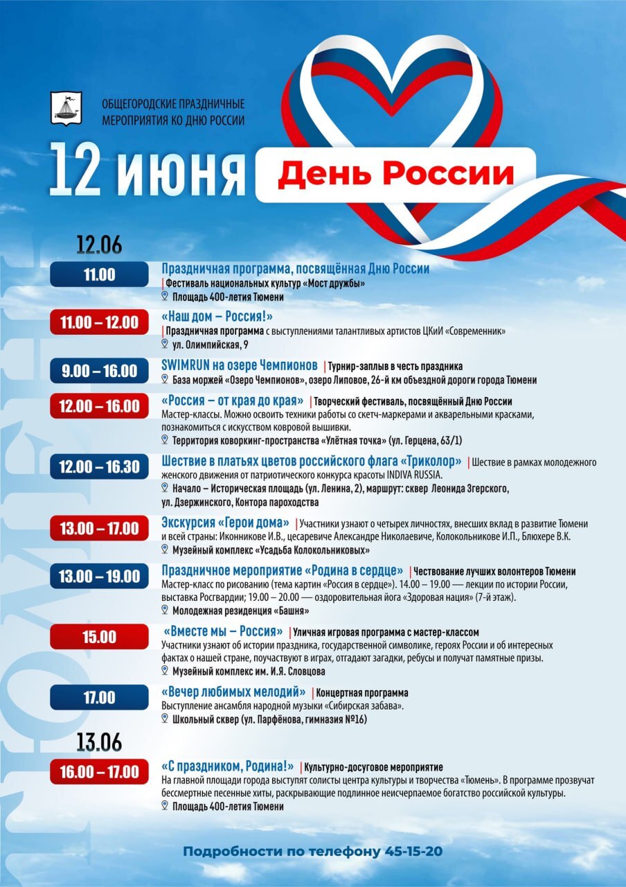 Афиша Дня России в Тюмени 11-12 июня