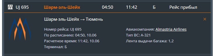 По расписанию самолет должен был приземлиться в 4:50 утра 10 июня. Однако, согласно обновленной информации онлайн-табло аэропорта, прибытие было в 11:42.