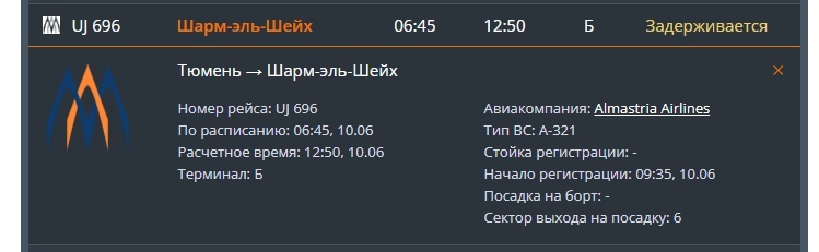 Из-за длительного ожидания прибытия также сдвинулось время обратного рейса – вылет в Египет теперь запланирован на 12:50 вместо 6:45.