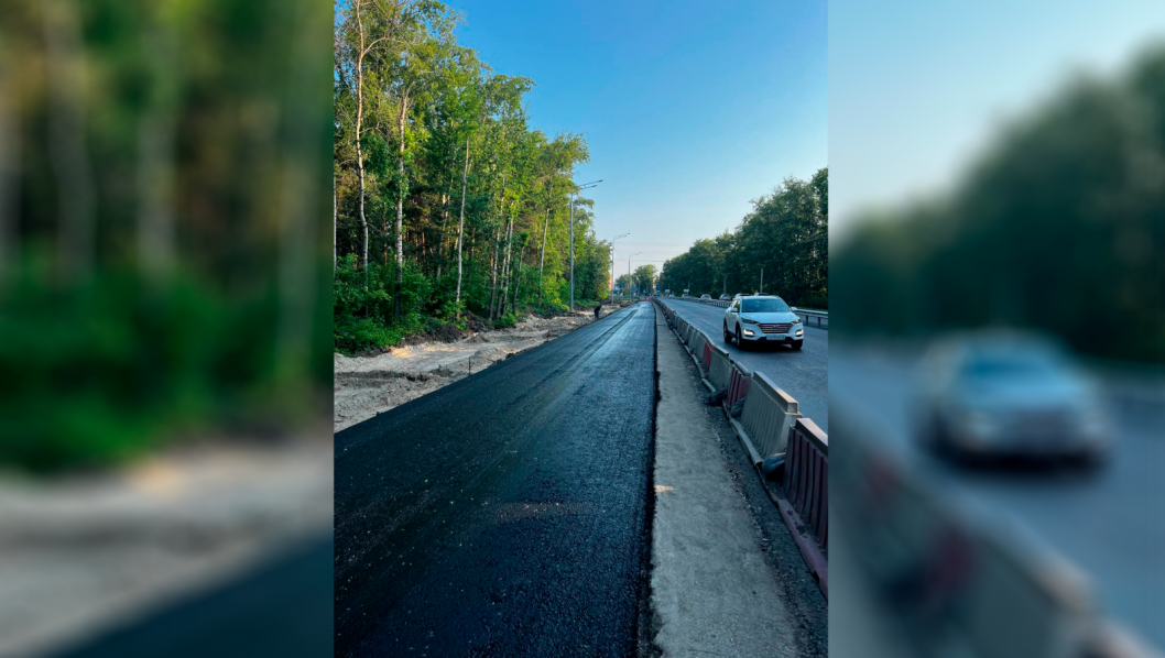 На участке более двух километров специалисты полностью заменили дорожное полотно и установили новое металлическое барьерное ограждение. Параллельно с этими работами ведется строительство долгожданного дополнительного съезда в микрорайон Комарово (район улицы Посадской).