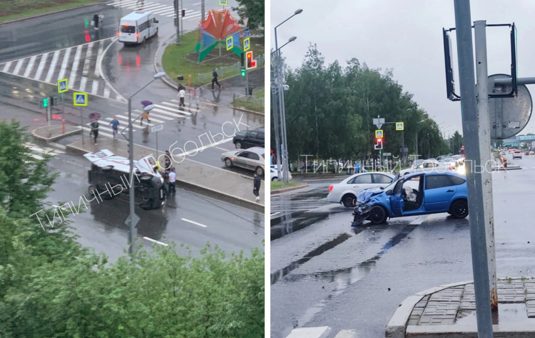 В Тобольске произошло ДТП с участием машины скорой помощи. Она столкнулась с другим автомобилем и завалилась на бок. Авария случилась вечером 19 июня.