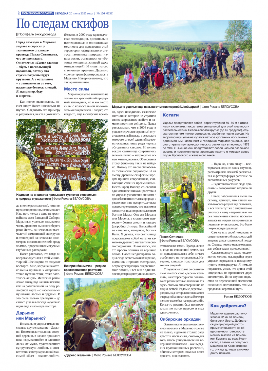 Перед отъездом в Марьино ущелье я спросил у тюменского сталкера-краеведа Павла Ситникова, что лучше надеть. Он ответил: «Самое главное – обувь с нескользящей подошвой, потому что спуски-подъемы будут крутыми. А в остальном – в зависимости от того, насколько боитесь клещей. Я, например, буду в шортах».