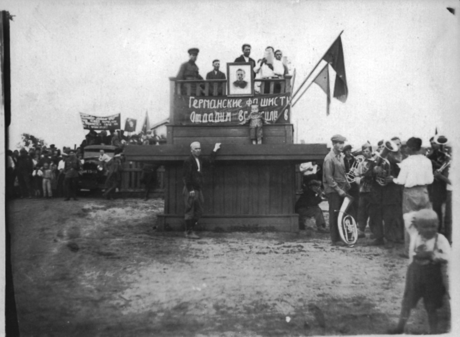Вечером того же дня во всех предприятиях и колхозах прошли митинги. На городской площади собрались жители, державшие транспаранты с портретами руководителей государства и лозунгами в поддержку Красной Армии. Началась мобилизация.