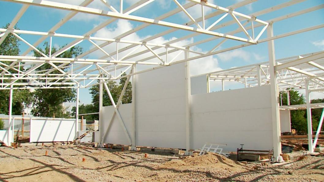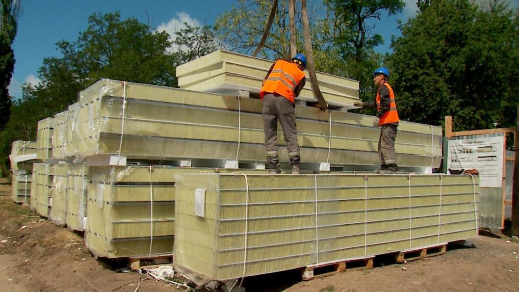 – Монтировать начинаем с нижних рядов, идеально выстраиваем уровень и идем выше. Закрываем стены, стыкуем углы, чтобы все было ровно и здание соединилось под ноль, – поделился бригадир строительной компании.