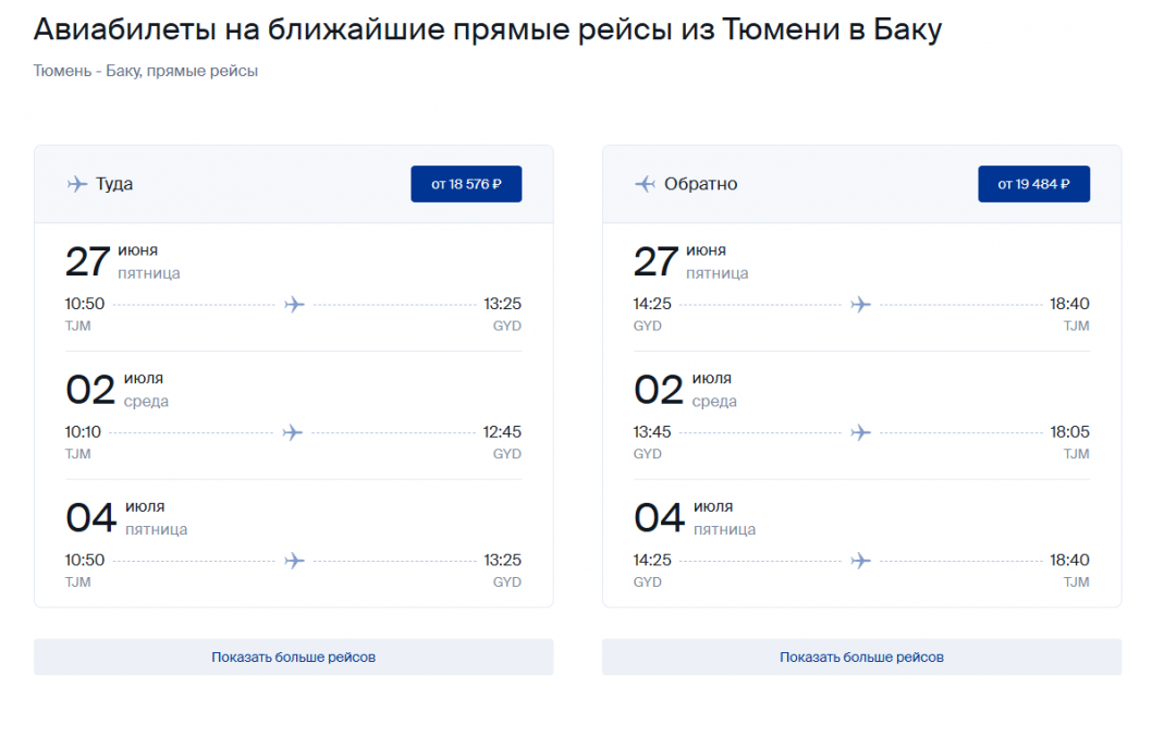 Новое расписание полётов предусматривает два регулярных рейса в неделю. По средам самолёт будет отправляться из Тюмени в 10:10 местного времени, обратный рейс из Баку запланирован на 13:45. По пятницам вылет из Тюмени назначен на 10:50, а возвращение из Баку – на 14:25.