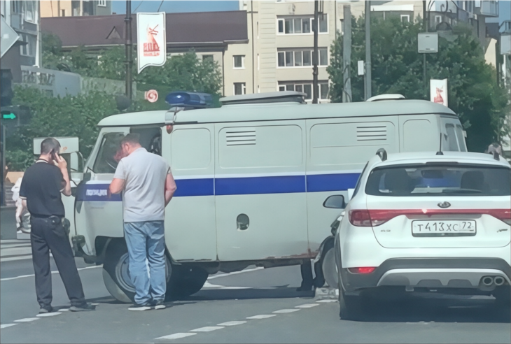 Легковушка врезалась в экипаж полиции в центре Тюмени