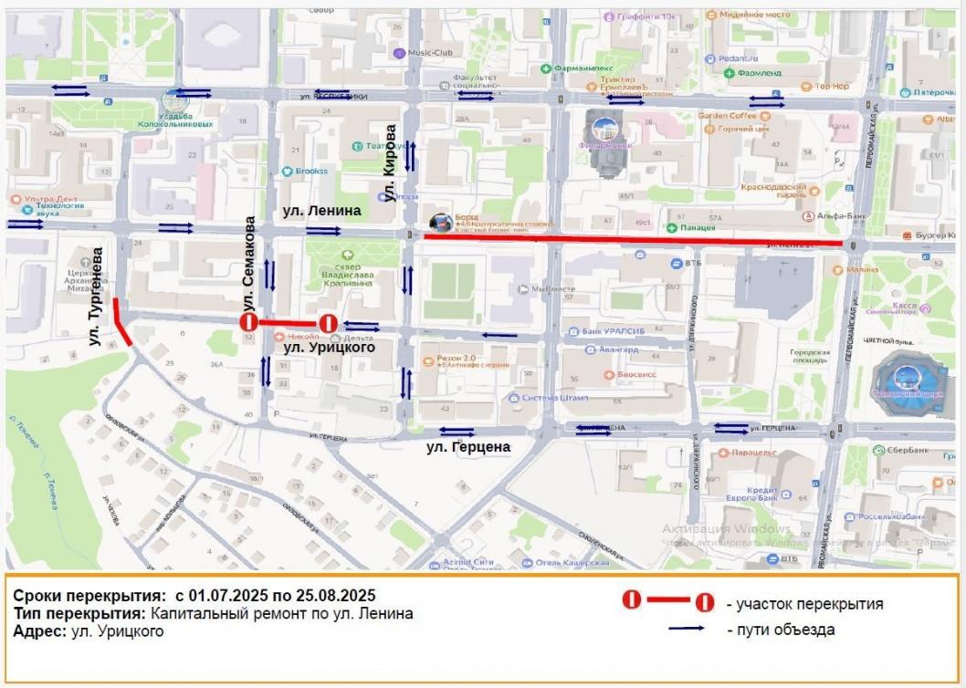 Возможные маршруты объезда: ул. Республики, ул. Семакова, ул. Герцена.