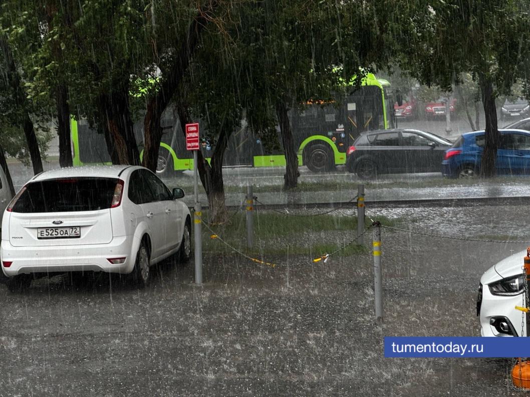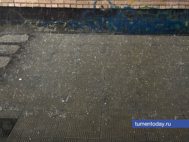 В районе дома Печати в Тюмени прошел мелкий град. Дождь продолжает умывать город. В дополнение к ним – гремит гром и мерцает молния. От этого периодически срабатывают сигнализации машин.