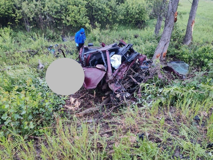 ДТП случилось на 47 км автодороги Ялуторовск-Ярково. Судя по фото, скорость движения была очень высокой – машина превратилась в груду металла.