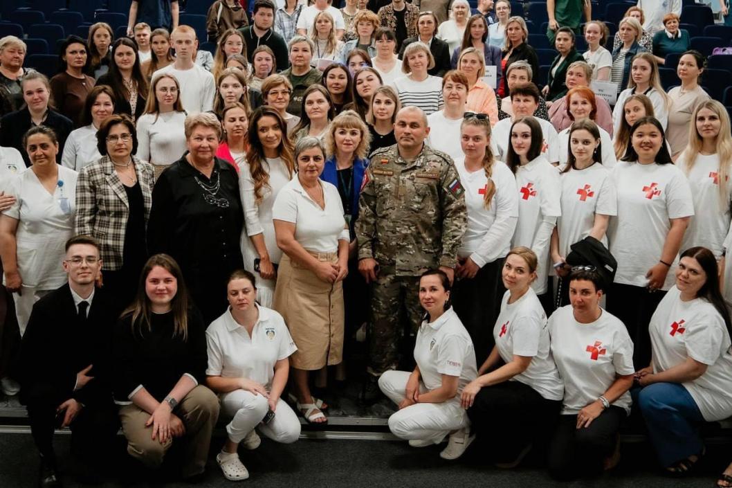 Офицер поблагодарил медиков за их мужество и самоотверженность, особенно тех, кто работает в зоне СВО, спасая жизни бойцов.