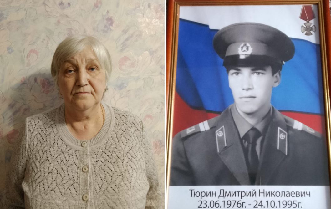 «Когда началась Чеченская кампания, насторожились все, у кого дети находились в армии. Мой сын Дмитрий Николаевич Тюрин служил старшим механиком-водителем в 506-м гвардейском мотострелковом полку в селе Тоцком Оренбургской области. После боя с 31 декабря на 1 января перестали приходить письма. Прошел январь. Потом в феврале образовался Комитет, и я сразу же обратилась за помощью.