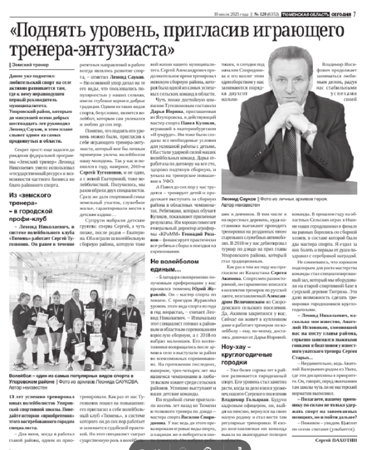 Давно уже подметил: любительский спорт на селе активно развивается там, где к нему неравнодушен первый руководитель муниципалитета. Упоровский район, которым до минувшей осени добрых шестнадцать лет руководил Леонид Сауков, в этом плане слывет одним из самых продвинутых в области. Секрет прост: еще задолго до рождения федеральной програм- мы «Земский тренер» Леонид Николаевич умело использовал «государственный ресурс» и возможности частного бизнеса во благо районного спорта.