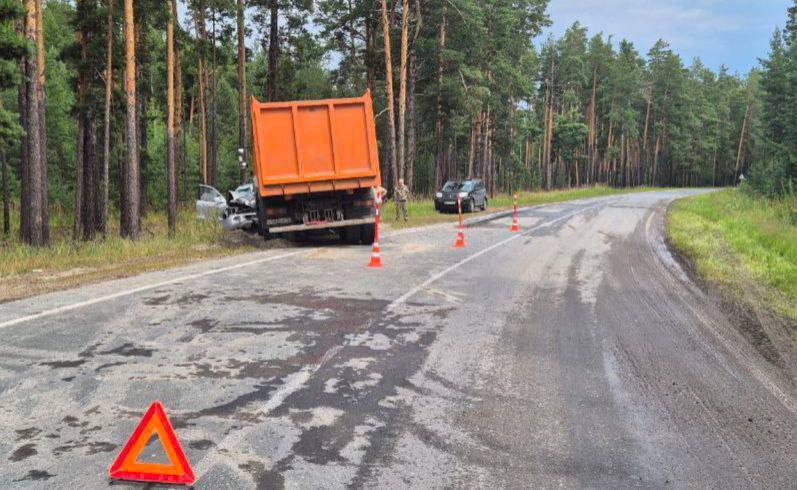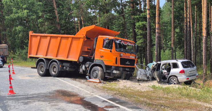 Самосвал въехал в автомобиль с детьми под Тюменью