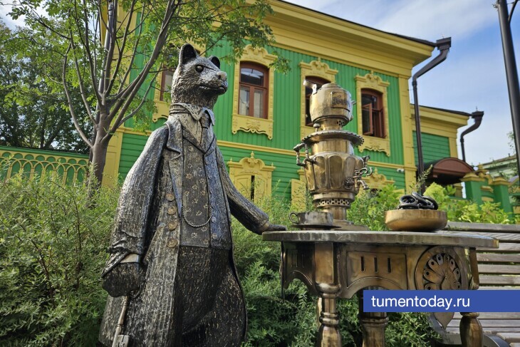 В областном центре появилась новая скульптура соболя, который пьет чай из самовара «Тюмень» с сушками. Новый арт-объект стал подарком жителям в преддверии Дня города, который будет отмечаться в субботу, 26 июля.