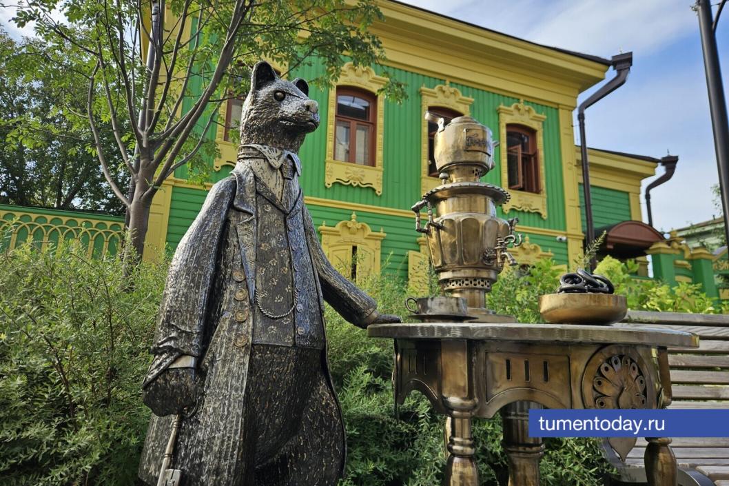 В Тюмени появилась новая скульптура соболя – он пьет чай на Дзержинского