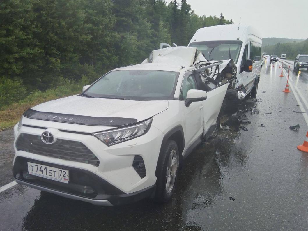 В утренней аварии 26 июля пострадали 5 человек. На 366-м километре автодороги Тюмень-Ханты-Мансийск в Уватском районе Тюменской области столкнулись рейсовый автобус Ford и Toyota.