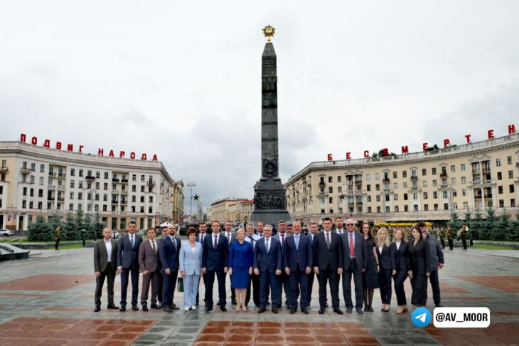 Важной частью визита стали памятные мероприятия. Александр Моор посетил монумент Победы в Минске, где возложил цветы и почтил память павших бойцов в годы Великой Отечественной войны.