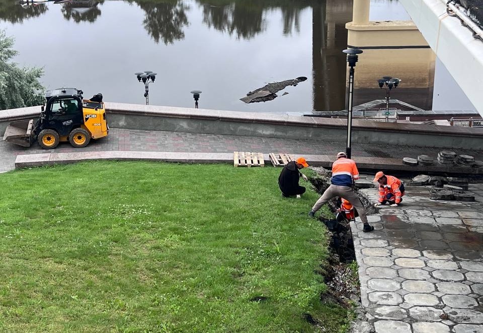 Напомним, после сильного ливня, который прошел в городе 4 июля, набережная тоже пострадала. Специалистам пришлось восстанавливать не только земляное полотно, но и кладку плитки в некоторых местах.
