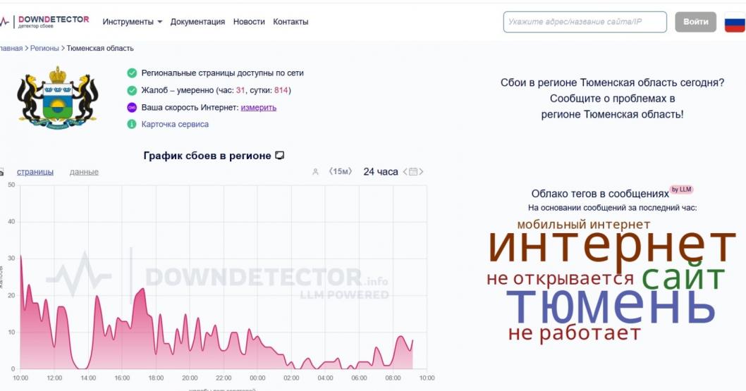 Во вторник, 29 июля, тюменцы вновь сообщают о перебоях в работе мобильного интернета. За минувшие сутки сервисом Downdetector зарегистрировано 814 обращений пользователей с жалобами на качество связи.