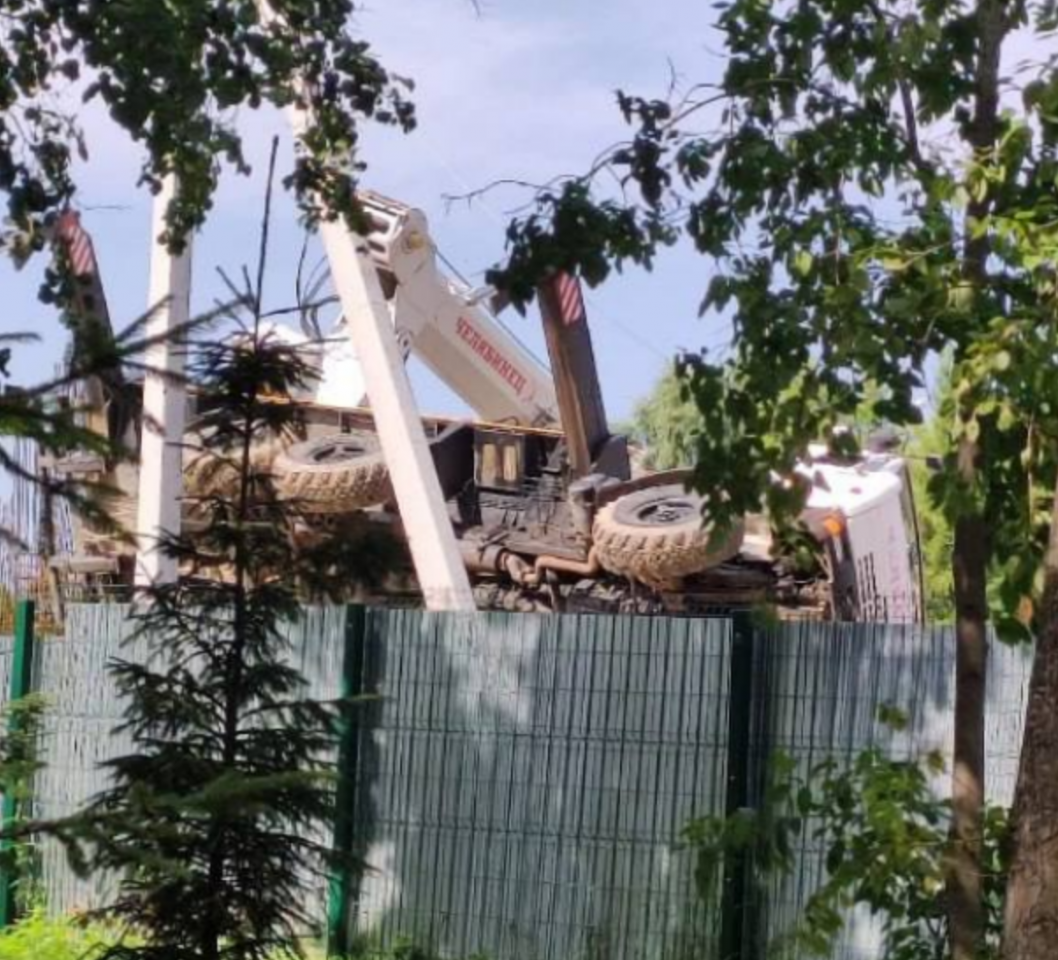 Строительный кран опрокинулся в Тобольске 31 июля. Крановщик получил травмы.