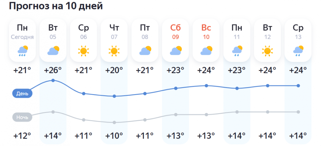 Начиная с середины недели, ожидается небольшое понижение температуры до +20..+21°C.