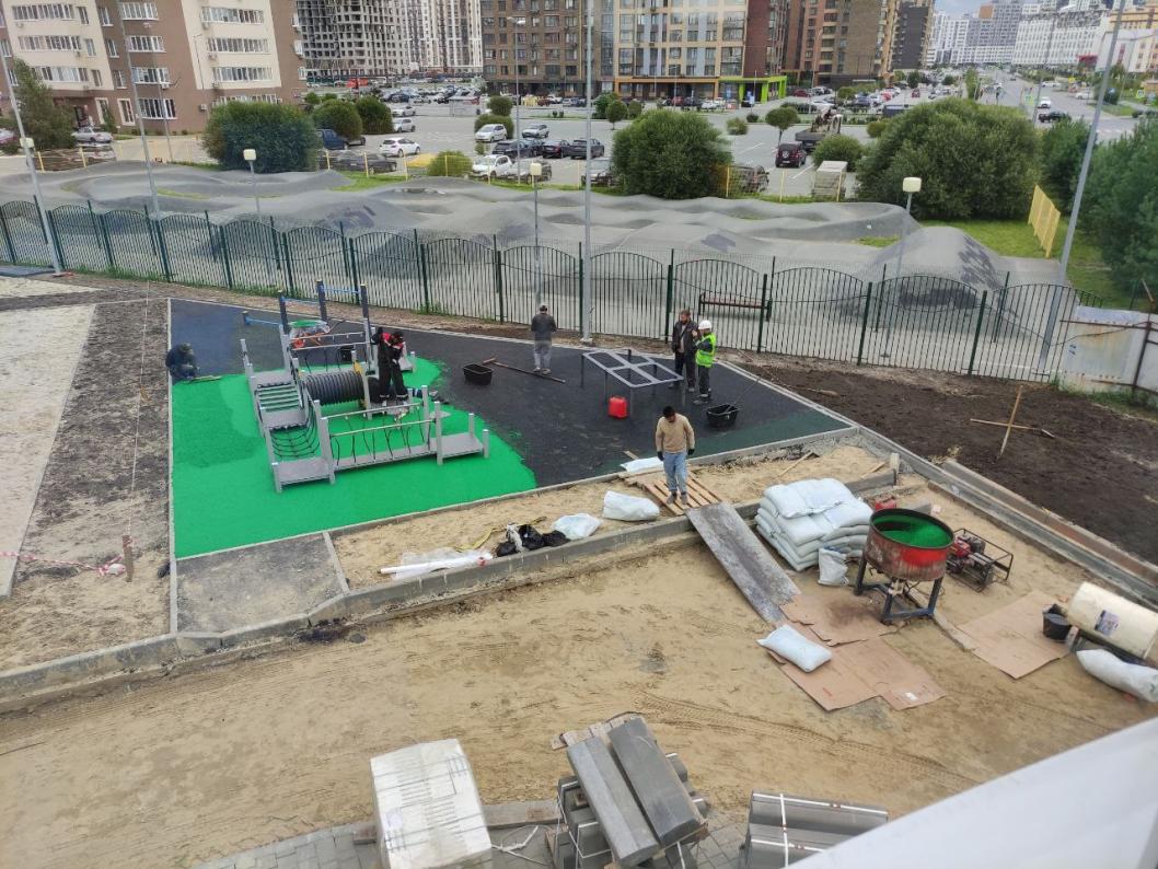 Завершены работы по окраске фасада, внутренней окраске детских групп, установке опор наружного освещения, камер видеонаблюдения, установке дверей, сантехнического оборудования, выполнены плиточные работы и др.