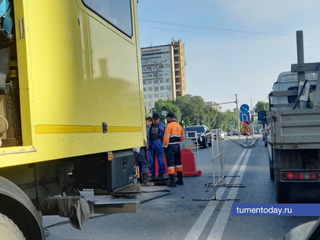 Часть дороги на Профсоюзной в Тюмени закрыта из-за ямы на асфальте
