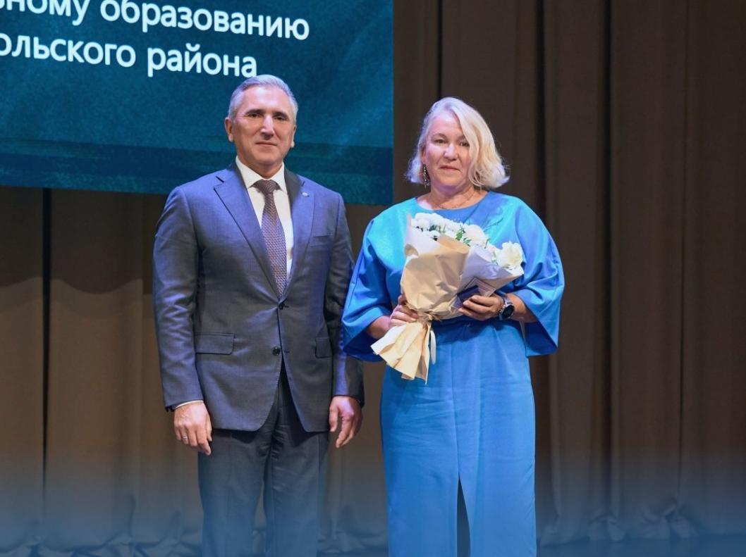 Награду ей вручил губернатор области Александр Моор на областном августовском общественно-педагогическом форуме «Призвание».