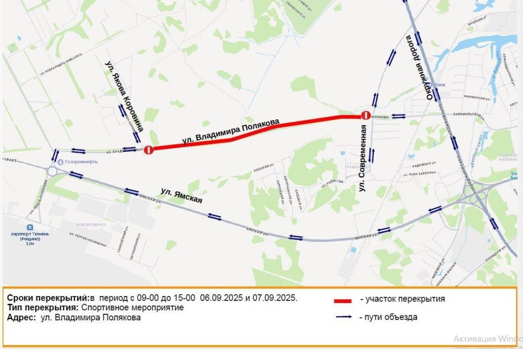 В Тюмени 6 и 7 сентября перекроют часть улицы Владимира Полякова