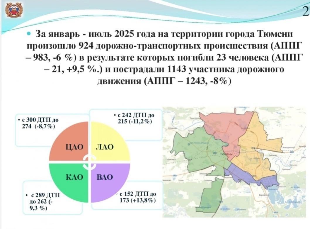 27 августа глава Тюмени Максим Афанасьев провел заседание городской комиссии по обеспечению безопасности дорожного движения. Анализ статистики за первое полугодие и часть третьего квартала 2025 года показал заметное улучшение ситуации на дорогах – число ДТП снизилось на 6% по сравнению с аналогичным периодом прошлого года.Об этом сообщает пресс-служба администрации город Тюмени.
