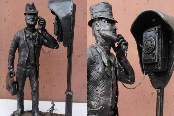 – В работе «Франт» – она же «Важный звонок» – отслеживается ностальгия по прошлому, где способом общения для многих был именно уличный телефон-автомат, – рассуждает мастер в интервью изданию «Тюменская область сегодня». – Я никогда не использую эскизы, всё делаю экспромтом, хотя неплохо рисую. Многих это удивляет: «Как так без эскиза?». А меня удивляет, почему это удивляет других.
