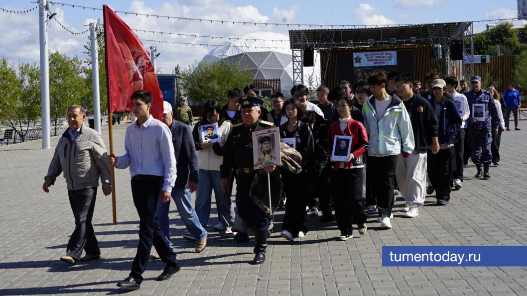 Особенностью памятной акции стало участие в шествии китайских студентов, которые проходят обучение в Тюменском медицинском университете, – около 25 человек прошли в колонне с фотографиями своих земляков, которые воевали с Японией.