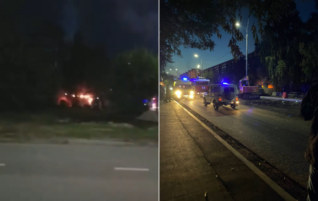 Горит вагон-бытовка в Тюмени | Фото: «ЧС Тюмень», vk.com