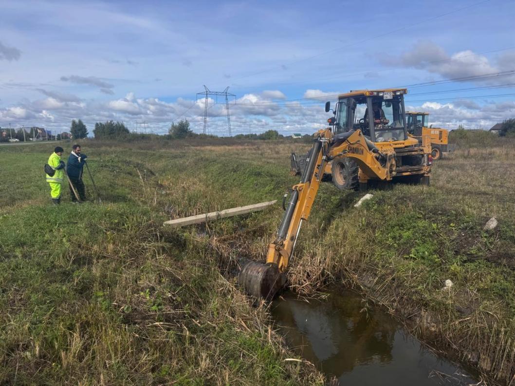 На улице Михаила Баранова также очищают канавы от мусора и ила, скопившихся за последние годы. Это улучшит дренаж в одной из самых проблемных зон округа.