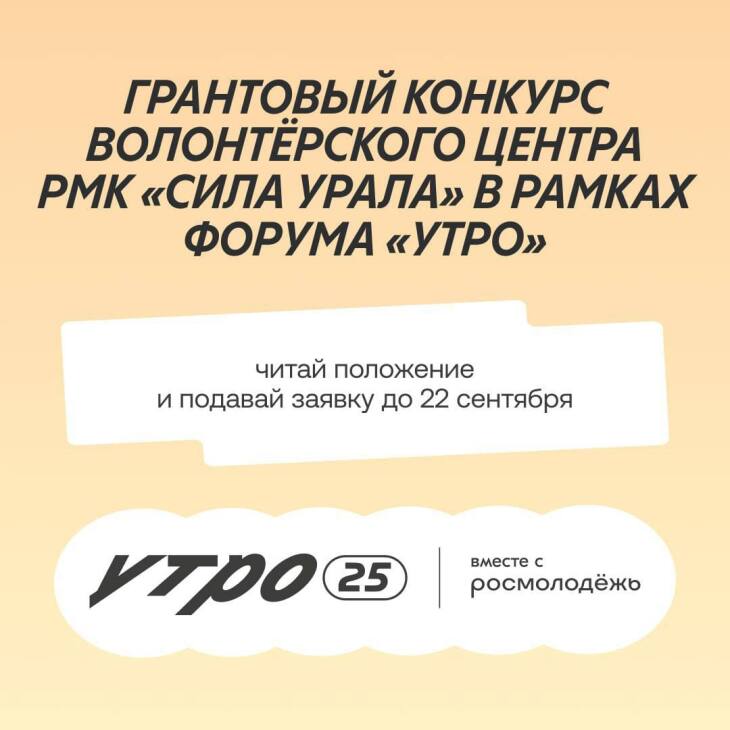Волонтерский центр РМК «Сила Урала» проведет на форуме УТРО грантовый конкурс по развитию добровольчества и общественно значимых инициатив, которые могут изменить жизнь людей к лучшему.