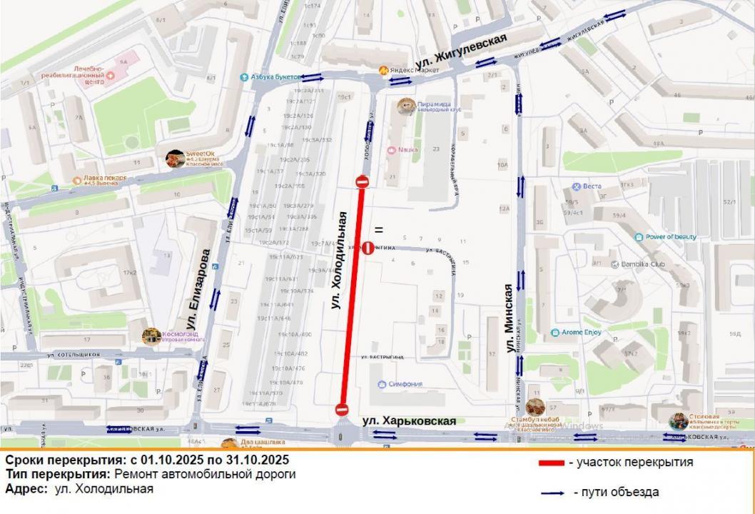 Объехать перекрытый участок предлагается по улицам: Харьковская, Елизарова и Минская.