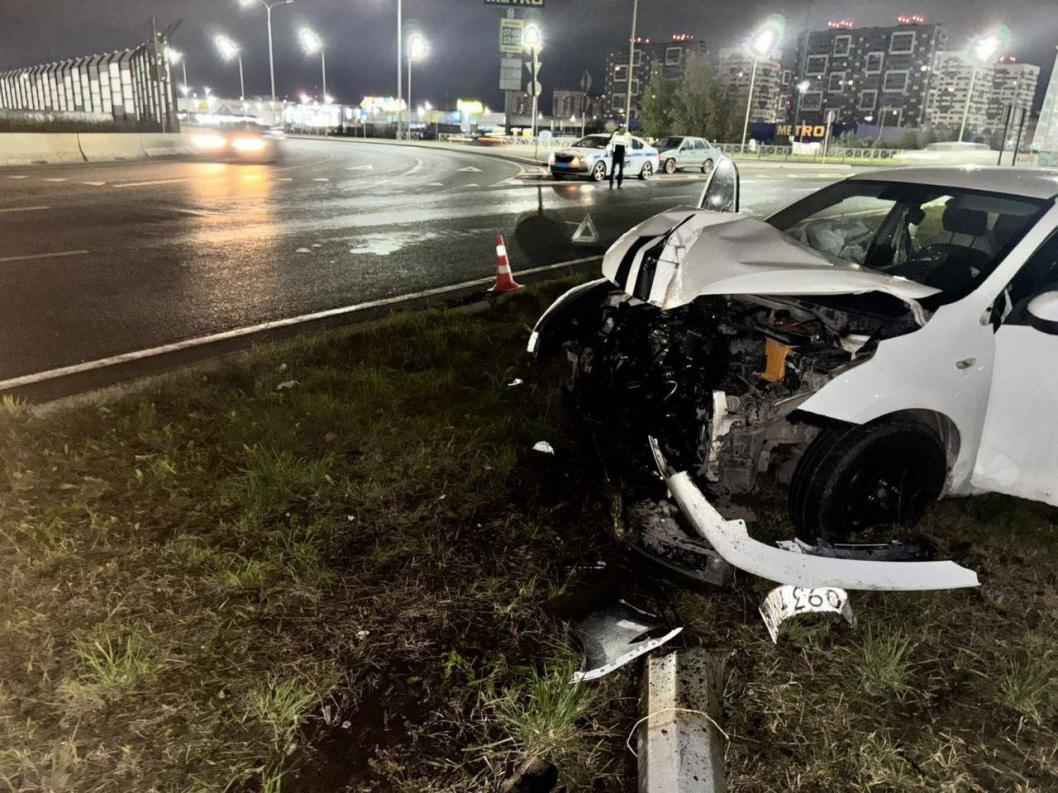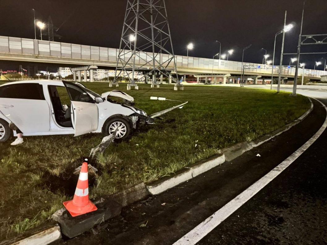 Сегодня ночью, 5 октября, автомобиль Kia въехал в фонарный столб на улице Мельникайте, 150 в Тюмени.