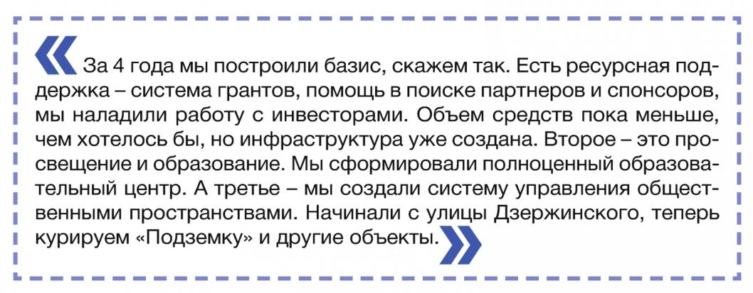 – Нормально. У нас стабильная статистика по доходам. Каждый год планомерный рост – количество компаний увеличивается примерно на 6 процентов. Даже в кризисные годы рост сохранялся, за последние 10 лет спадов не было. И это объяснимо. Во-первых, креативные индустрии часто продают интеллектуальный продукт: франшизы, технологии. С логистикой проще. Сила нашего региона еще и в крупных промышленных компаниях, которые остро нуждаются в креативных решениях. Приведу пример: застройщики раньше строили просто стены и потолок, а сегодня продают качество жизни – дворы, соседские центры, ландшафтный дизайн. Такие «фишки» как раз создают креативные индустрии. Это помогает девелоперам и нам оставаться в топе, облагораживает город.