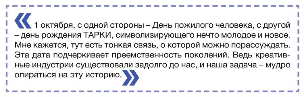 – У нас есть стратегия развития креативных индустрий, утвержденная губернатором. И там есть важный супертезис. Сейчас все города борются за таланты, стараются, чтобы их люди не уезжали. А наш глобальный вектор другой. Мы не хотим просто удерживать – хотим, чтобы к нам приезжали. Чтобы Тюмень была магнитом. Позиция «удерживать» – более слабая, она как бы признает, что есть Москва, куда все стремятся. А мы планируем быть местом, куда хотят попасть все остальные. Еще один важный момент: в Тюмени будут рождаться бренды, которые захватят российский и мировой рынок. Именно через них будет продвигаться город.