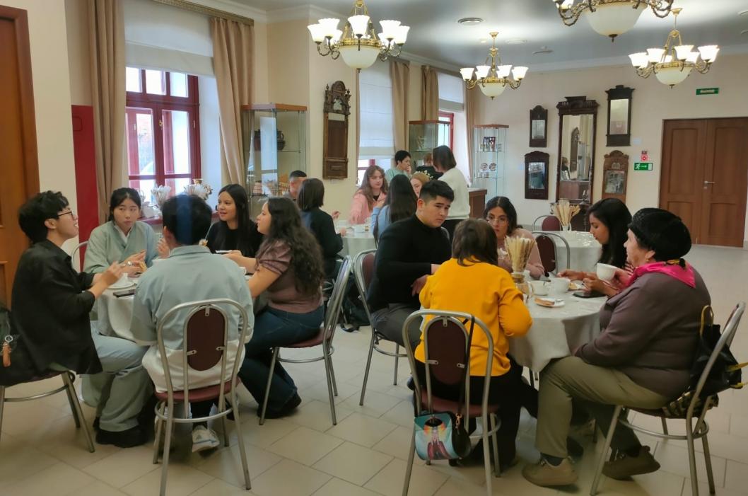 Традиционный прием в музее завершил насыщенную программу дня. Будущих медиков радушно встретили традиционным угощением: чай и блины с домашним грушевым вареньем из сада музея.