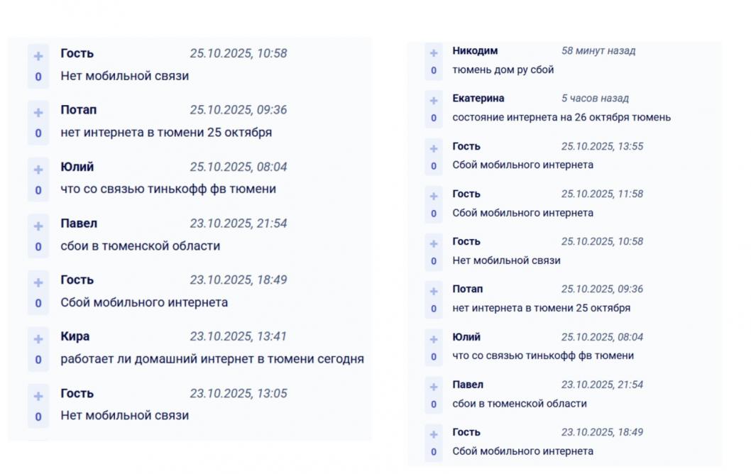 Днем 26 октября в Тюмени наблюдаются сбои в работе мобильного интернета. Проблемы с подключением встречаются в центре, районе Войновки, КПД, Лесобазы. Накануне, 25 октября, мобильный интернет Мегафона не работал от путепровода Мельникайте – 30 лет Победы до путепровода Мельникайте-Широтная.