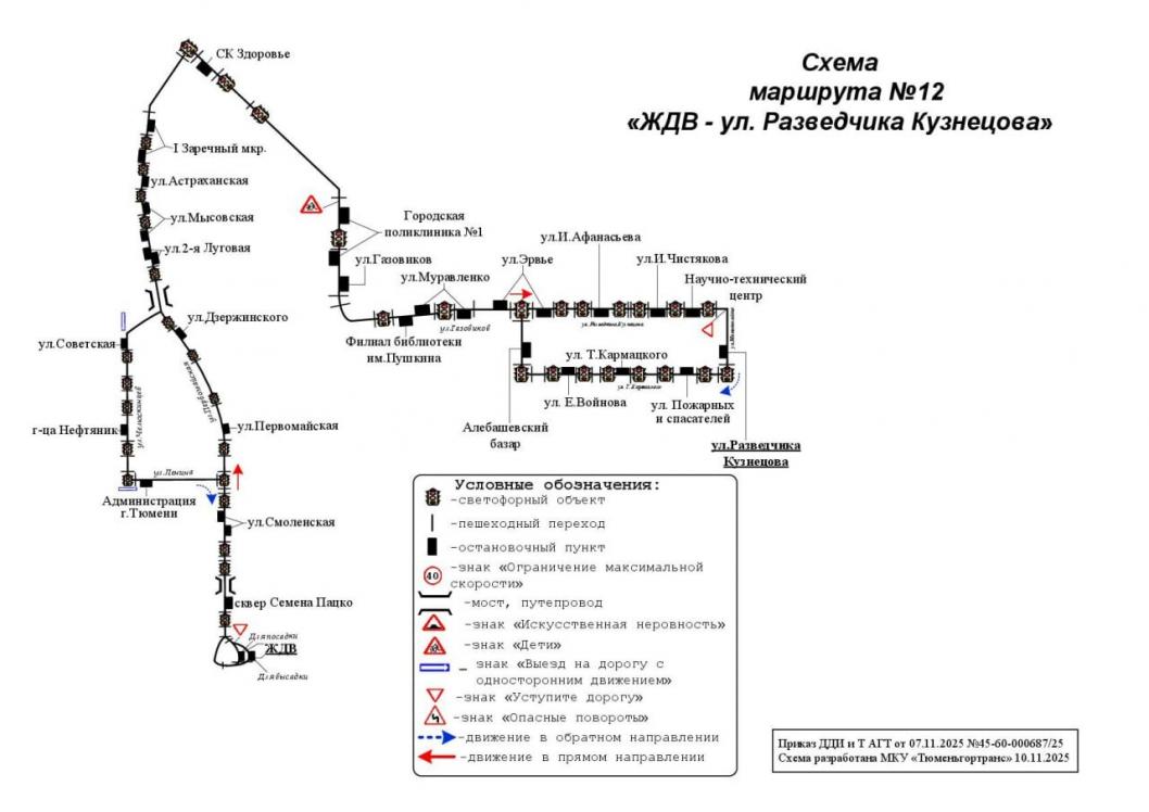 Схема движения маршрута регулярных перевозок № 12 «ЖДВ – Озеро Круглое» в Тюмени изменится с 22 ноября. Несколько остановок из пути следования исчезнут, но добавятся другие.