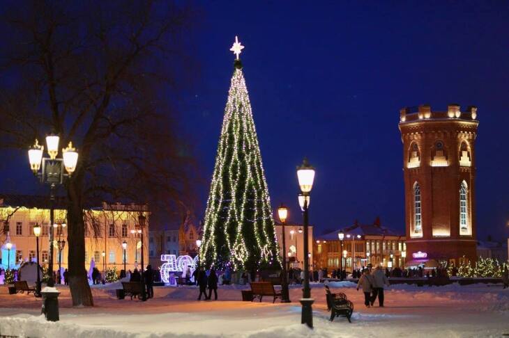 Александровский сад и улица Мира украсятся нарядной ёлкой. На Базарной площади зальют Пятницкий каток и установят горку для детей и взрослых. Традиционно здесь же появится большая праздничная ёлка.