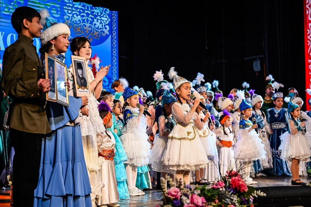 На сцене выступили творческие коллективы Национально-культурной автономии казахов Тюменской области, в том числе юные воспитанники школы казахского танца «Жас Урпак/Новое поколение». Прозвучали песни времен Великой Отечественной войны и современные композиции, посвященные любви к Родине и единству народов России.
