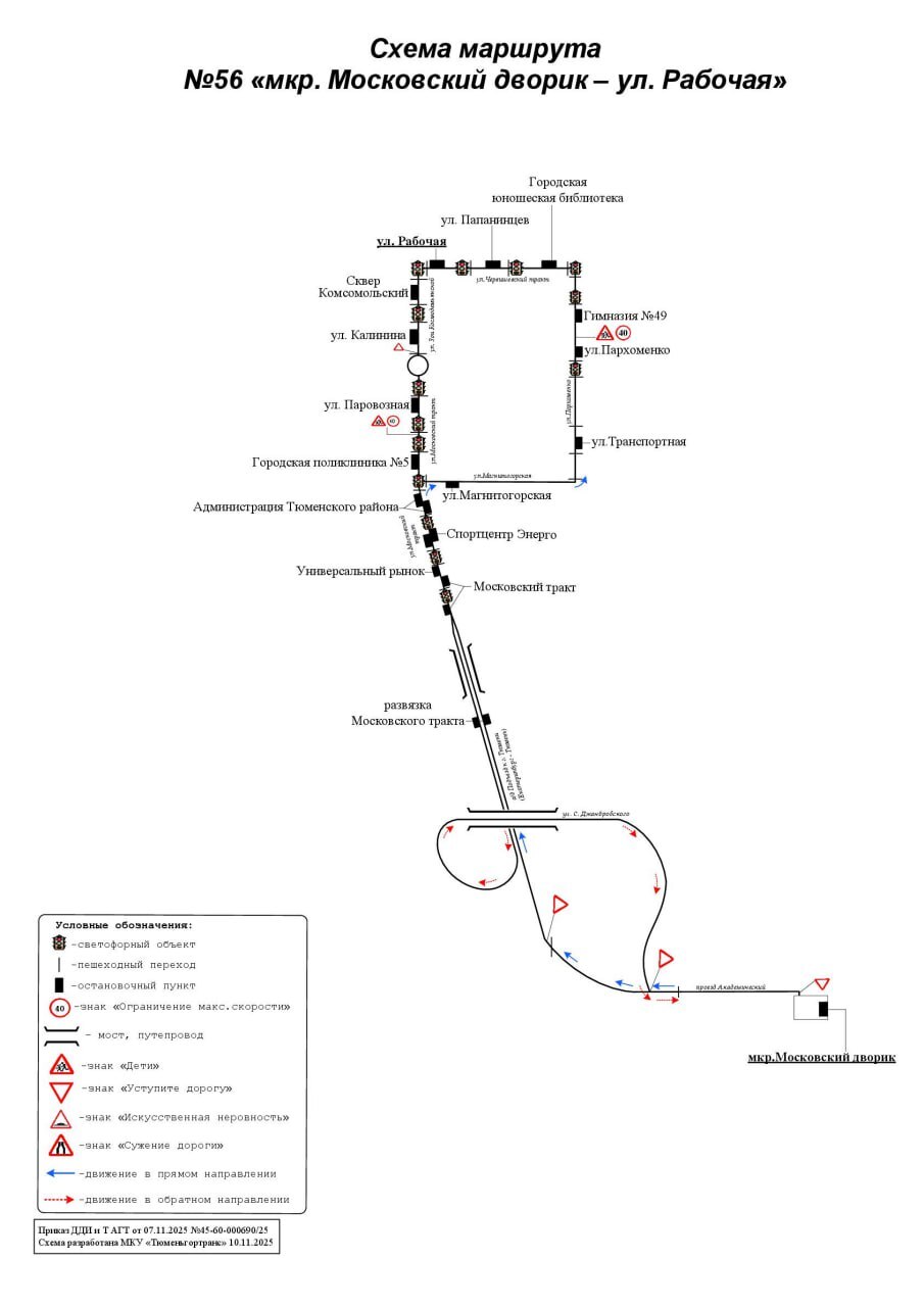 С 1 декабря 2025 года в Тюмени запустят новый автобусный маршрут №56. Он будет следовать от микрорайона Московский дворик до ул. Рабочей, сообщили в администрации города.
