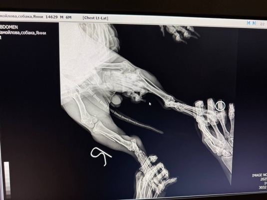 – Короткошерстный - кличка в группе Янге, по рентгену – застарелый, но еще не до конца сросшийся (срастается неправильно) перелом бедренной кости левой задней лапы. Операция назначена на завтра. Длинношерстный - кличка в группе Янни, свежий многооскольчатый перелом голени правой задней лапы. Операция назначена на завтра, – пояснила волонтер.