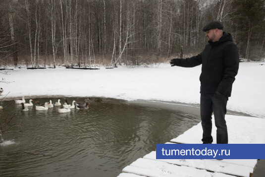 Ветеран СВО Сергей Дунаевский – житель городской, но после возвращения домой стал фермером. Озерцо возле фермы застыло, и только в одном месте, где из трубы льется теплая вода, образовалась полынья – там плавают утки и гуси. Под темной водой – форель, толстолобик, карп, белый амур, судак. Хочешь – бери удочку да рыбачь. Место зарыблено. Сначала в воду запускали крупных особей, а сейчас уже много мальков.