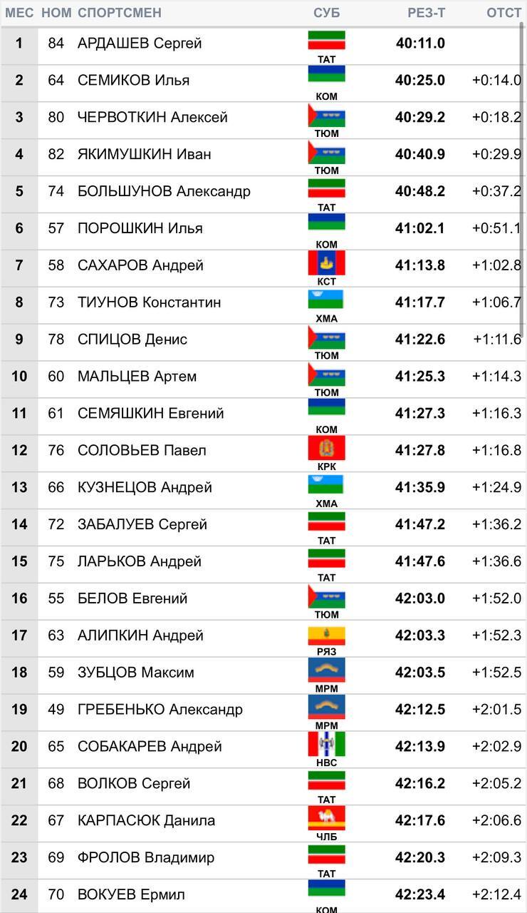 Спортсмены состязались в индивидуальной гонке на 15 км классическим стилем. Атлет из Тюменской области Алексей Червоткин завоевал бронзовую медаль.