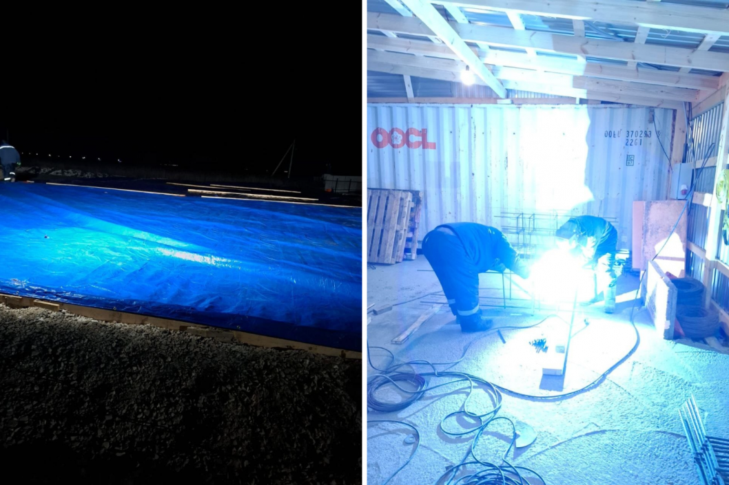В Сладковском округе идет строительство новых водоочистных сооружений (ВОС). Рабочие завершают армирование фундаментных плит под будущие резервуары чистой воды и основное здание водоподготовки.