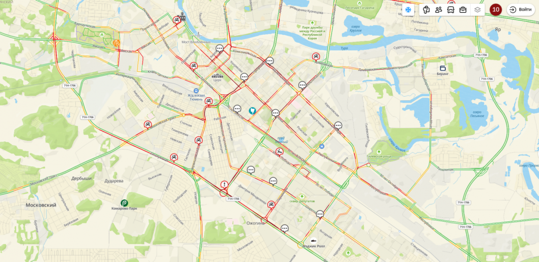 Пробки в 10 баллов сковали Тюмень в пятничный вечер 19 декабря. Добраться из центра в любую часть города практически невозможно. На картах сервиса «2GIS» указано как минимум 6 ДТП: в районе Набережной, на улицах Запольной, Закалужской, Пермякова и других.